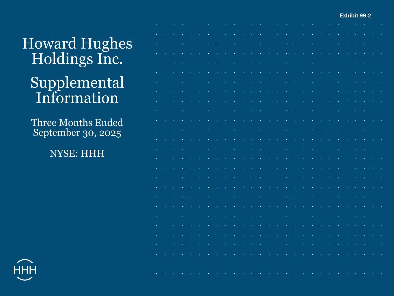 Howard Hughes Holdings Inc. Supplemental Information Three Months Ended September 30, 2025 NYSE: HHH Exhibit 99.2